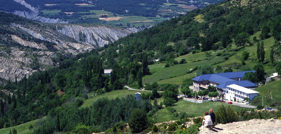 Vilas del TurbónEl Balneario se encuentra situado en uno de los estribos del Prineo Aragonés, al pie del macizo Turbón y a 1.437 metros de altitud.