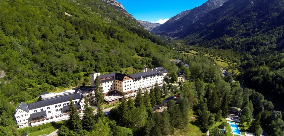 Vilas del TurbónEl Balneario se encuentra situado en uno de los estribos del Prineo Aragonés, al pie del macizo Turbón y a 1.437 metros de altitud.