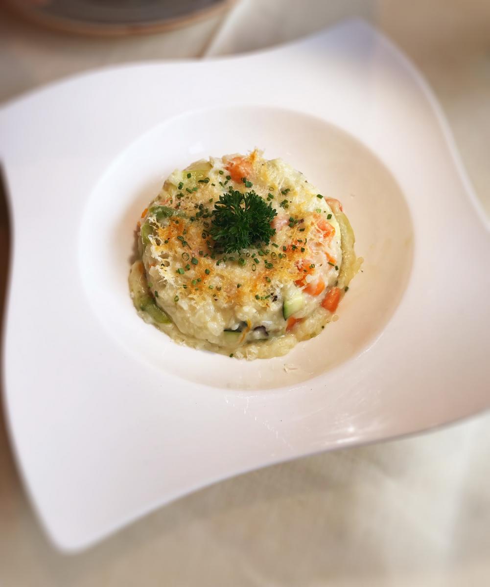 En esta ocasión, el equipo de cocina del Restaurante El Jardín ha elaborado un Menú Especial compuesto por un aperitivo de bienvenida, un entrante a elegir entre Ensalada de láminas de Bacalao con romesco y almendras tostadas o Taco de Pulpo braseado con espuma de patata a la gallega. En el plato principal, con arroz como ingrediente estrella, se puede elegir entre: Arroz meloso de carrilleras y calabaza al tomillo, Arroz cremoso de setas, jamón y queso Divirín, Arroz con verduras de temporada gratinado, Risotto de cigalas con granna padano, Arroz marinero del señorito al azafrán o Arroz con Pulpo y wakame. En cuanto al postre, el Restaurante propone una Espuma de Arroz con Leche caramelizada con crujiente de canela. El precio del Menú es de 36 euros por persona.