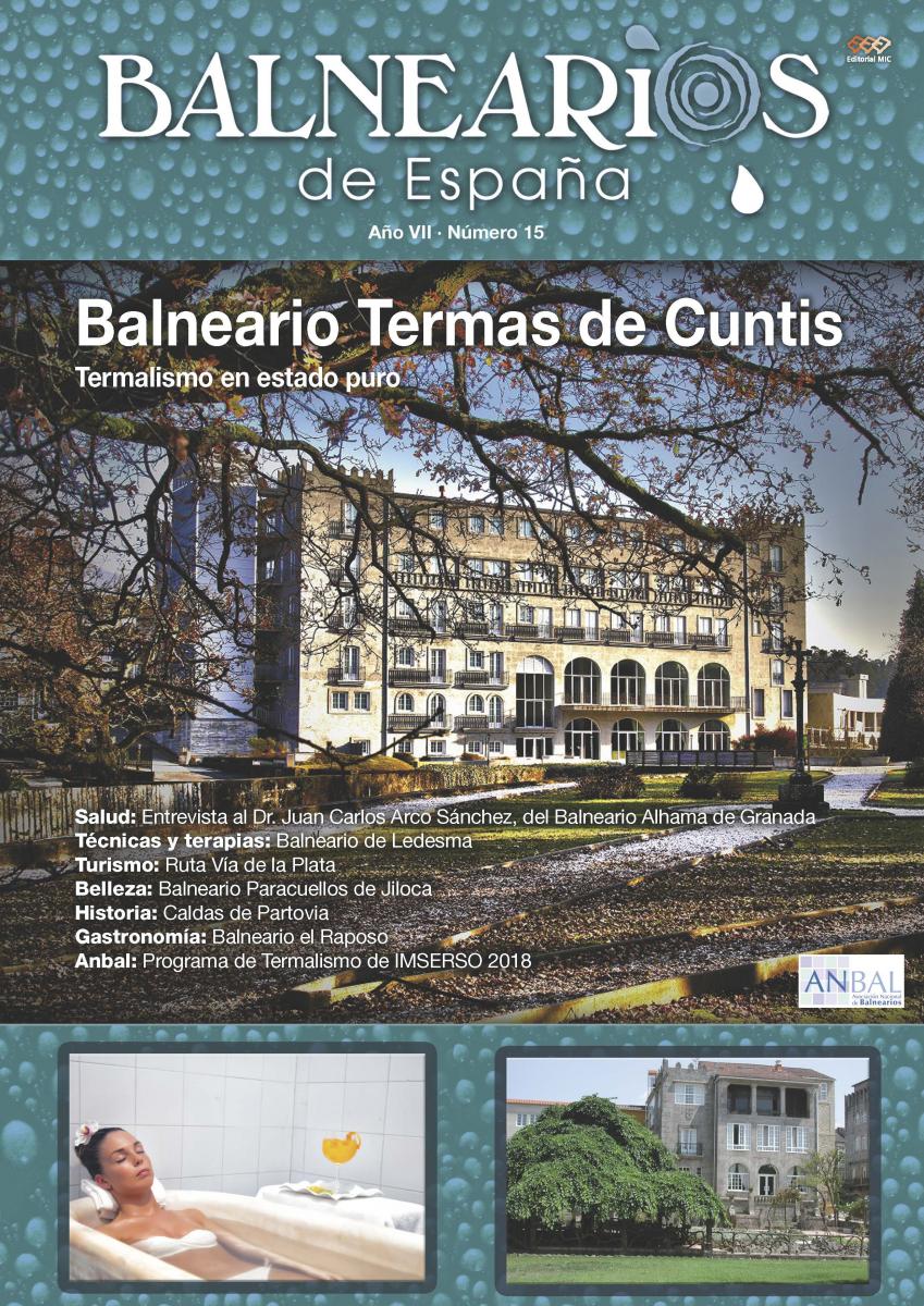 La Asociación Nacional de Balnearios (ANBAL) ha publicado un nuevo número de la revista Balnearios de España, la publicación más importante del sector, donde se recogen las principales noticias, así como información y reportajes de las actividades que realizan los establecimientos asociados. En esta ocasión, la portada está dedicada a Termas de Cuntis, situado en Pontevedra, del que se describen sus instalaciones, su oferta de terapias y tratamientos y las indicaciones de sus Aguas. La revista también incluye una entrevista al Doctor Juan Carlos Arco Sánchez, del Balneario Alhama de Granada, así como un  recorrido por la historia de Caldas de Partovia, con una larga tradición termalista en Galicia.